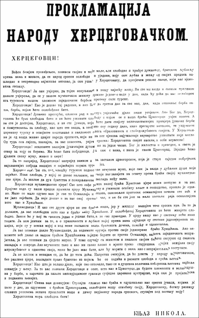 Проглас Црногорцима за рат са Турцима 1876.